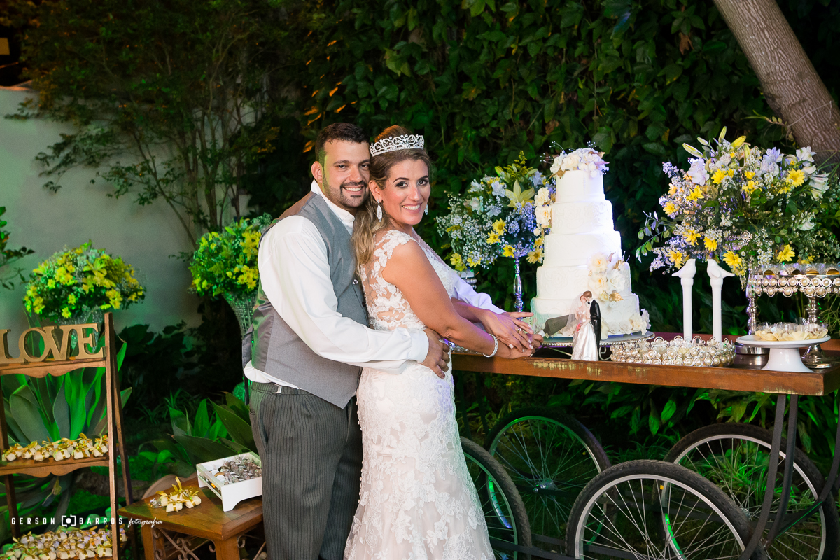 noiva e noivo cortando o bolo de casamento wedding